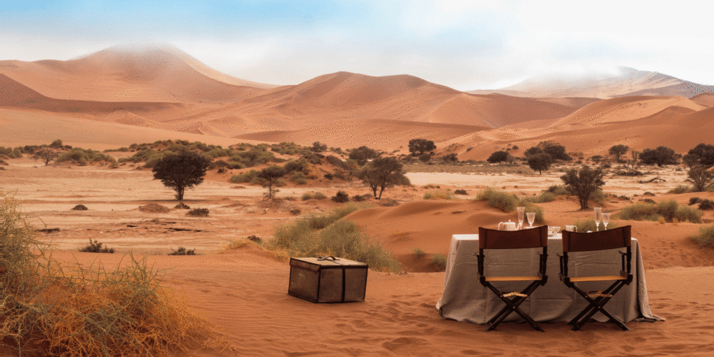 Namibijská poušť je se stářím 55 milionů let nejstarší pouští světa. V jejím jižním cípu, v oblasti Karas uprostřed enormní privátní rezervace s nekonečnými výhledy do africké divočiny, se nachází jedna ze zastávek portfolia Zannier Hotels. Butikový koncept Sonop s pouhou desítkou pokojů je umně posazen mezi pro region charakteristické rudě zbarvené balvany a je v postvulkanické krajině s písčitými a štěrkovými pláněmi téměř neviditelný. Po absolvování 450 kilometrů dlouhé cesty autem z hlavního města Windhoek čeká na hosty sofistikovaný systém dřevěných schodů a podest, jež nese hlavní lounge, restauraci, spa, cigar lounge a to hlavní, plátěné stany.