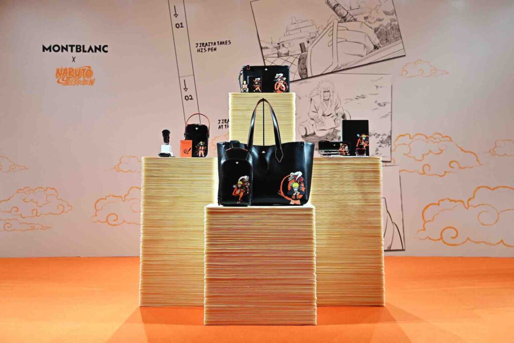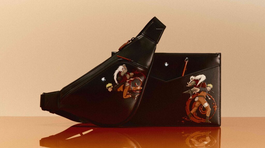Sortiment kožených doplňků Montblanc x Naruto zahrnuje menší brašny typu Sling Bag, Chest Bag pro nošení přes hrudník či Mini Reporter pro nošení křížem přes tělo, či větší tašku Tote nebo psaníčko s popruhem na zápěstí. Každý model z černé kůže je ozdoben výrazným obrázkem Naruta a/nebo Jiraiya doplněný o akcenty z oranžové kůže a zdobné kaligrafické symboly. Mezi malé kožené doplňky patří pouzdro na 3 kreditní karty, kompaktní peněženka, pouzdro na pero, kožený opasek s přezkou ve tvaru M, klíčenka či kryt na iPhone 13 a pouzdro pro Air Pods. Chytré hodinky Montblanc x Naruto Summit 3 rozehrávají na ciferníku vzrušující narutovské animace.