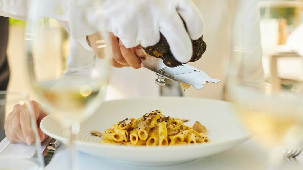 Trajektorie rytmických serpentin pomalu opouští hnědozelené odstíny podzimních lesů v sedle Predel a před námi se majestátně zvedají štíty Julských Alp s mahagonově zbarvenou horou Mangart. Míříme do nejsevernější části Triglavského národního parku, kde začíná alpský masiv, který odsud pokračuje dál přes celou Evropu. Elektrický Taycan svižně stoupá po úzkých silnicích až do Mangartského sedla, a řidičským emocím vyvolaným křivkami syrové vysokohorské asfaltky v boji o pozornost konkurují úchvatné výhledy na slovinské středozemí. Motoristický výstup na Mangart s převýšením 980 metrů patří v rámci Evropy mezi ty syrovější, kaskádovitá cesta s pěti tunely vysekanými do skal je místy co do šířky opravdu minimalisticky pojatá a inženýři při její stavbě ostrými úhly nešetřili. Odměnou za technické manévry jsou ovšem jedinečná panoramata, jejíchž atraktivita stoupá přímo úměrně s nadmořskou výšku. Těsně pod vrcholem, který se nachází na úrovni 2677 metrů nad mořem, stojí za to zastavit se v Koče na Mangartu, místní tradiční horské chatě. Udělají vám tady čerstvé palačinky nebo třeba poctivou zelňačku s kraňskou klobásou.