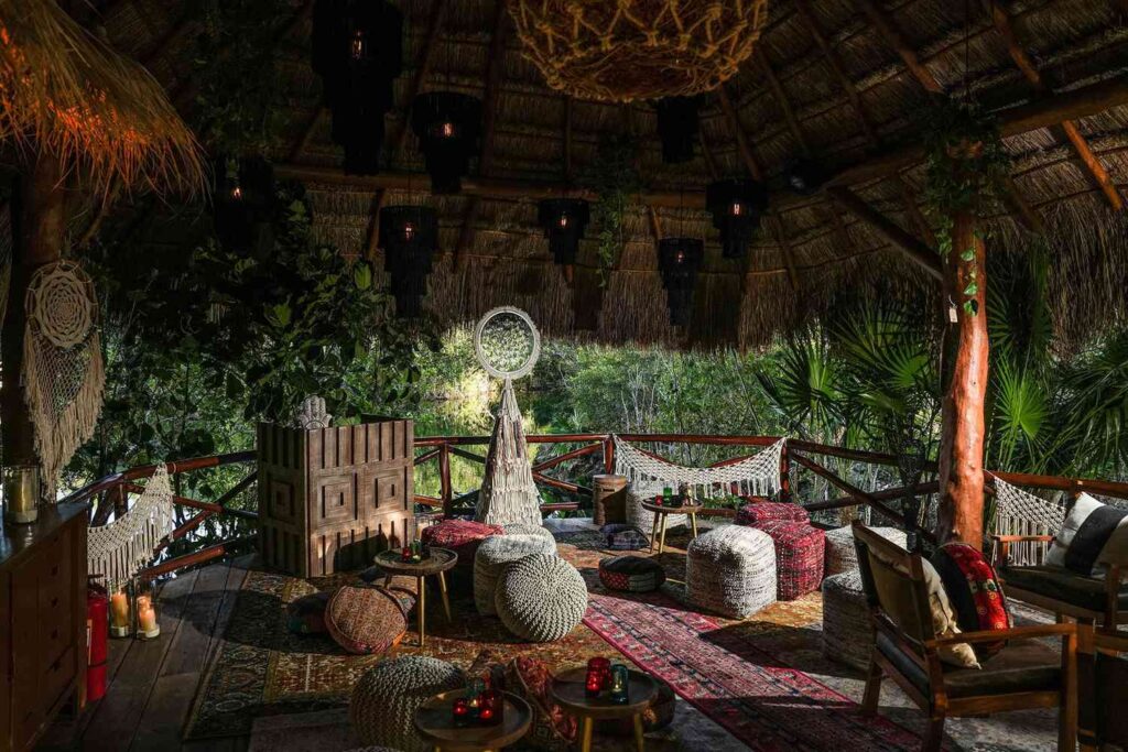 Dekor bohémského konceptu baru vzdává hold yucatánským řemeslným technikám, tkaným kobercům a macramé detailům. Atmosféru dotváří i zavěšené květiny a mihotavé světlo svíček. Joshua Monaghan, který má v režii mixologii v resortu, vytvořil několik koktejlů inspirovaných dobou prohibice, aby podpořil atmosféru nedostupného baru.