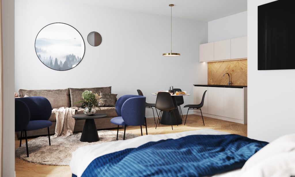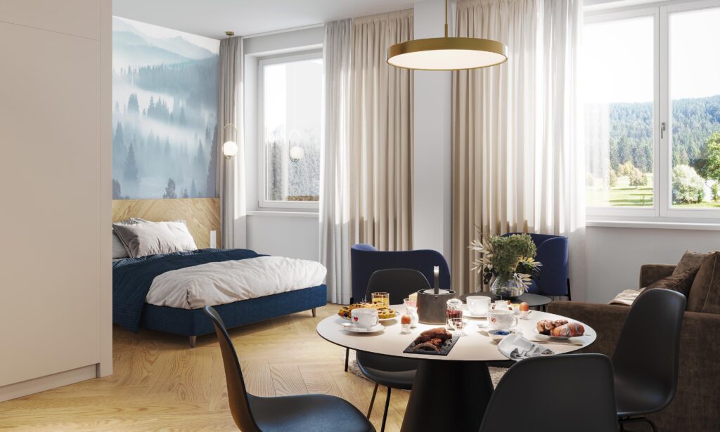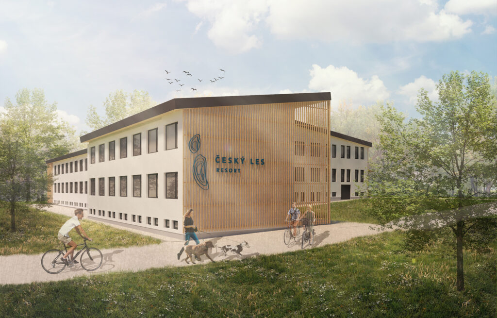 Resort Český les vzniká radikální rekonstrukcí dvou dlouho nevyužívaných budov – někdejší prvorepublikové školy a původních vojenských kasáren. V areálu uprostřed panenských lesů na česko-německé hranici bude k dispozici celkem 52 prostorných boutique studií a pokojů, gourmet restaurace, bar, konferenční prostory a wellness se saunou, párou, solnou stěnou a sofistikovanými masážními terapiemi.