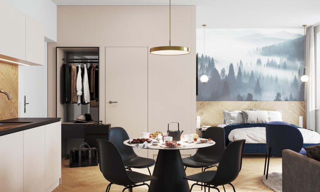 Design vzdušných pokojů, pod nímž je podepsáno studio Konceptual, čerpá inspiraci z charakteru dechberoucí okolní přírody lesů pod Čerchovem a myšlenky vytvoření ideálního prostředí pro ničím nerušenou relaxaci. Definuje jej tedy především spojení masivního dřeva, kovu a skla, minimalistické linie a neutrální barevná paleta. Zvláštní pozornost je v celém areálu věnována panoramatickým výhledům do zeleně.