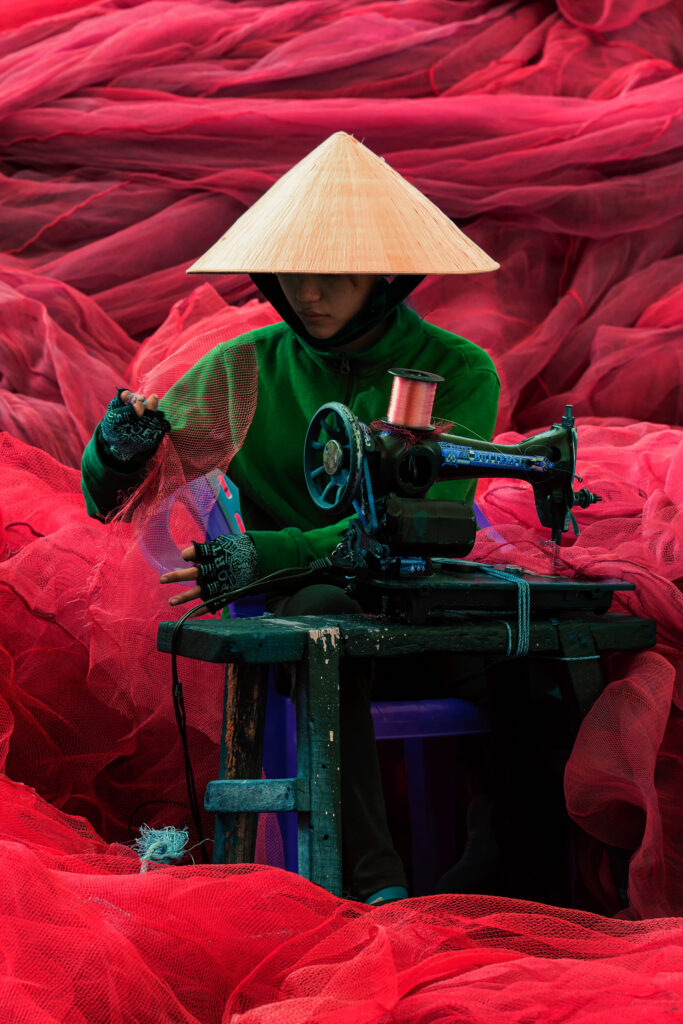 Barvitá fotografuje znázorňuje každodenní chléb vietnamské dívky, která pečlivě opravuje potrhané rybářské sítě. Proces látání je nezbytný, protože sítě v oceánu často nevydrží nápor mořských vod a jejich sílu v oblasti kolem provincie Ninh Thuan v jižní části Vietnamu.