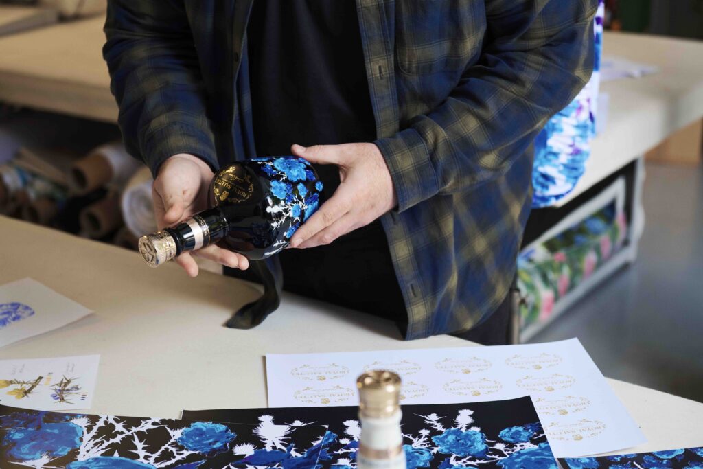 Novinka je inspirována návrhářovým jedinečným stylem reinterpretace klasických květinových vzorů s moderním a neotřelým nádechem. Výsledný, na míru vytvořený živý potisk zdobí limitovanou edici lahví a dokonale vystihuje tvůrčí harmonii mezi Royal Salute a Richardem Quinnem – vyvažuje krásu a eleganci okvětních lístků růží s moderním stylem reprezentovaným trny.