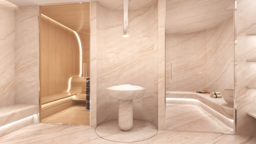 V Dior Spa najdete tři treatment rooms, jeden double room, ale i experience space, kde se skrývá také onyx affusion shower room určený k hydroterapii, ledová fontánu, hamman a další místnost cílená na detox a zeštíhlující infra-therapy procedury.