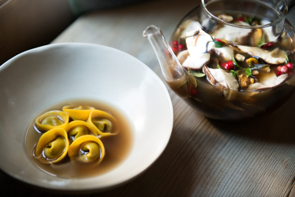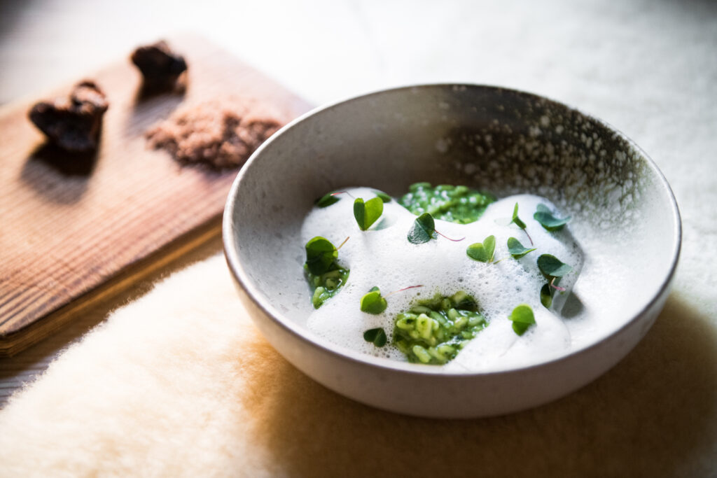V Michelin Guidu je aktuálně zařazeno 16 611 podniků, přičemž pouhých třicet z nich dokázalo dosáhnout na maximální možné ohodnocení průvodce, tedy tři hvězdy a zároveň green star. St. Hubertus patří – tedy lépe řečeno patřil – mezi ně. Green Star se uděluje od roku 2020 a podmínkou jejího získání je důsledně udržitelný, transparentní a etický přístup k vysoké gastronomii. Právě ten je esenciální součástí Niederkoflerova charakteristického kulinářského stylu, který sám pojmenoval Cook the Mountain. V praxi to znamená, že na jeho menu najdete jen suroviny pocházející z rádiu 250 kilometrů okolo stolu, u kterého jíte. V zimě, kdy jsou hory pod sněhem, je situace samozřejmě složitější než v létě, a právě proto jsme Norbertovu filosofii vyrazili do St. Hubertus ochutnat koncem ledna.
