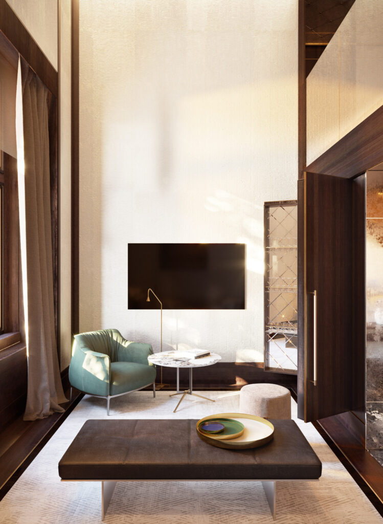 Interiér snoubí čistý současný design s historickými prvky a zlatými detaily, které evokují imperiální odkaz městského paláce. Velkorysost prostor umožnila převahu apartmá nad pokoji v poměru 80 : 31. Hotelová restaurace Donnersmarkt se profiluje ve stylu moderní rakouské gastronomie v kombinaci s plant-forward filozofií a kavárna pracuje s vlastní značkou kávy. Tělu i duši pomůže najít nový klid a energii SPA, velkoryse rozprostřené do tří poschodí, v němž hraje prim světlý mramor. Hladké plochy kamene, jehož motiv se prolíná celým prostorem hotelu, zajistí ničím nerušenou relaxaci, a to třeba ve čtrnáctimetrovém bazénu.