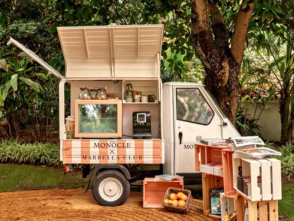 Pokud se chystáte trávit léto ve španělské Marbelle, rozhodně se stavte v restauraci El Patio v hotelu Marbella Club. Kromě středomořské kuchyně vás tu čeká stylový pop-up shop prestižního mezinárodního magazínu Monocle, který má v portfoliu spoustu knih o cestování a umění žít. Velkou dávku pozornosti věnujte jeho zápisníkům, ale i módním kouskům a doplňkům, na jejichž výrobě vždy pracuje s renomovanými světovými značkami.