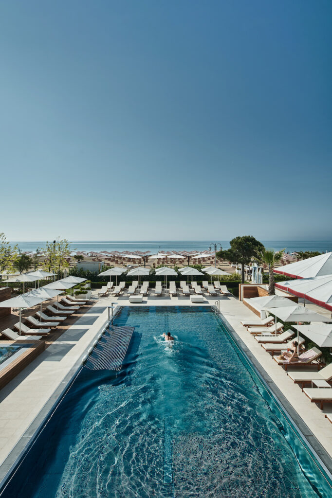 Řetězec Falkensteiner má jako své motto Welcome Home. V případě tohoto brandu nejde o prázdný slogan, ale hoteliérskou filozofii. Vztahuje se samozřejmě i na Falkensteiner Jesolo, kde z vás opadne tíha všedních starostí už na recepci a s definitivní platností pak v soukromí světlem zalitého pokoje. Designér Matteo Thun vsadil v interiérech pokojů na přírodní materiály, pastelové tóny a pohodlný nábytek. Každý pokoj má balkon nebo terasu s výhledem na moře. Na pláž sjedete výtahem, začíná hned za venkovním bazénem a beach barem. Stačí si sbalit ručník, knihu a sluneční brýle, lehátek se slunečníky je na privátní pláži dostatek.