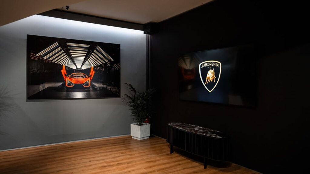 V každém koutě salonu vás přivítá vůně Lamborghini, hosté mohou popíjet italské espresso v obývacím prostoru zařízeném italským partnerem značky Living Divani nebo si zblízka prohlédnout kolo 3T Exploro Racemax x Huracán Sterrato, lakované v barvě Verde Gea, která kopíruje terénní supersportovní vůz s motorem V10. Zážitek pokračuje ponořením návštěvníků do projektů Lamborghini „Epic Road Trip“ NFT, kde jsou supersportovní vozy Lamborghini nepřehlédnutelnými protagonisty na místech, která mohou virtuální cestovatelé objevovat díky QR kódu objasňujícímu kampaň.