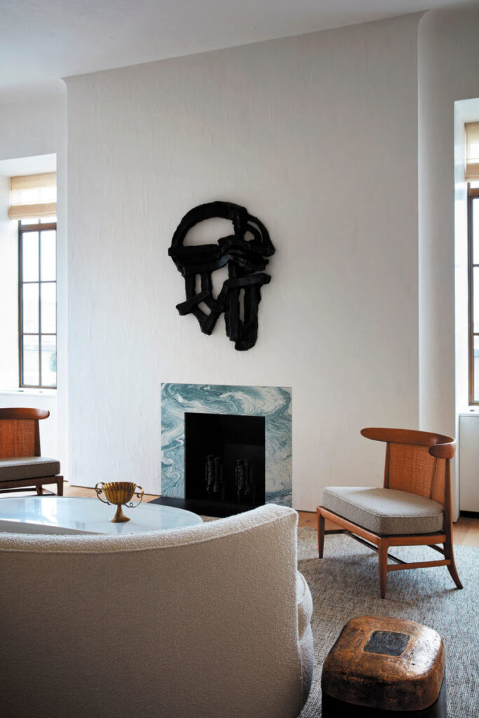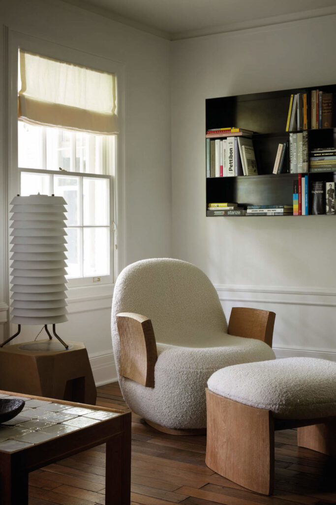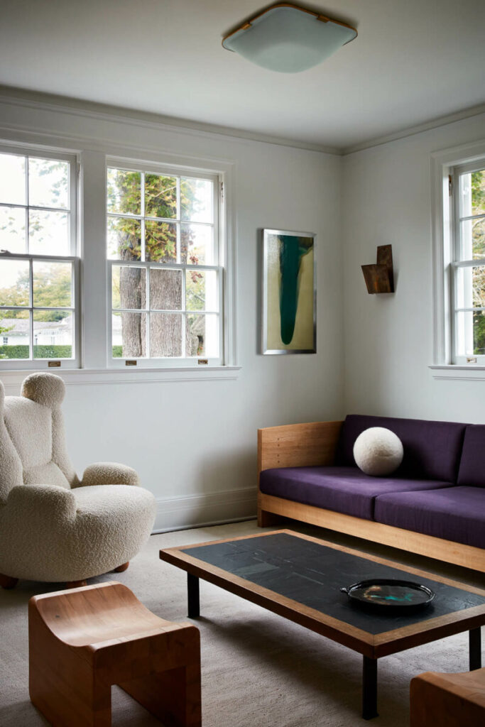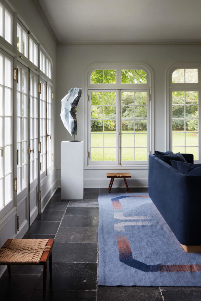 Od počátku svého působení ve světě interiérového designu Pierre Yovanovitch čerpá podněty z designérského hnutí Swedish Grace, jež v čele se švédským architektem Erikem Gunnarem Asplundem proslulo kombinací jednoduchých linií, starodávných motivů a mimořádným důrazem na kvalitu řemeslného zpracování. Tato inspirace nás vrací zpátky do rezidence Lasata, do domu nedaleko oceánu, kde se mísí barevné moderní tvarosloví s historickými designovými aluzemi. Jako první sem Pierre Yovanovitch umístil sedací nábytek od francouzského designéra Jeana Toureta či jeho skandinávského kolegy Axela Einara Hjortha, který rovněž čerpal z již zmíněného severského stylu. A jelikož si majitel domu nepřivezl do East Hampton téměř žádný další mobiliář, doplnil francouzský designér eklektický výběr o kousky z vlastní řady Pierre Yovanovitch Mobilier. V obývacím pokoji Lasaty najdeme jeho autorskou půlkruhovou dubovou sedačku nebo výrazné křeslo Flirting. Prostor dále dotváří křesílko z 30. let od britského designéra Geralda Summera a stůl z dílny současného avantgardního výtvarníka a produktového designéra Martina Szekelyho.