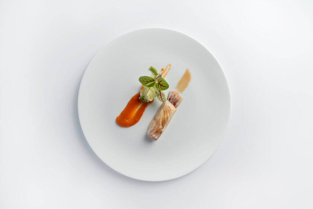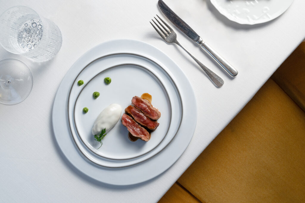 Prostředí Moments je nastavené v duchu zákonů filozofie jin a jang. Komorní tlumený interiér restaurace zdobí z jedné strany harmonizující živá květinová stěna, zatímco v druhé části zaznamenáte dynamický ruch kuchyně, která s orchestrálně přesnou synchronizací připravuje každý chod degustačního menu. Prosklená open kitchen, jež působí jako designové akvárium naplněné uměním haute cousine, umožňuje hostům sledovat celý proces příprav jednotlivých pokrmů z první řady. V popředí právě zmíněného pak spočine zrak na překvapivé rekvizitě – ledabyle opřeném jízdním kole. Zdánlivě napatřičný prvek interiéru je nápovědou pro pochopení všeho, co se bude dít v následujících třech hodinách.