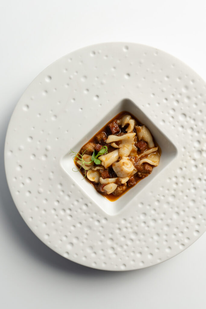 Španělsko = seafood, a po pomalém rozjezdu je tak na čase ponořit se do jeho identity naplno. Další tři zastávky menu s sebou proto nesou slanou vůni Středozemního moře. Z Barcelony jsme se na pomyslné chuťové mapě posunuli lehce na západ do města Tarragona, kde už na nás čekala katalánská specialita Clotxa, v níž obligátní sardinky nahradila oliheň.