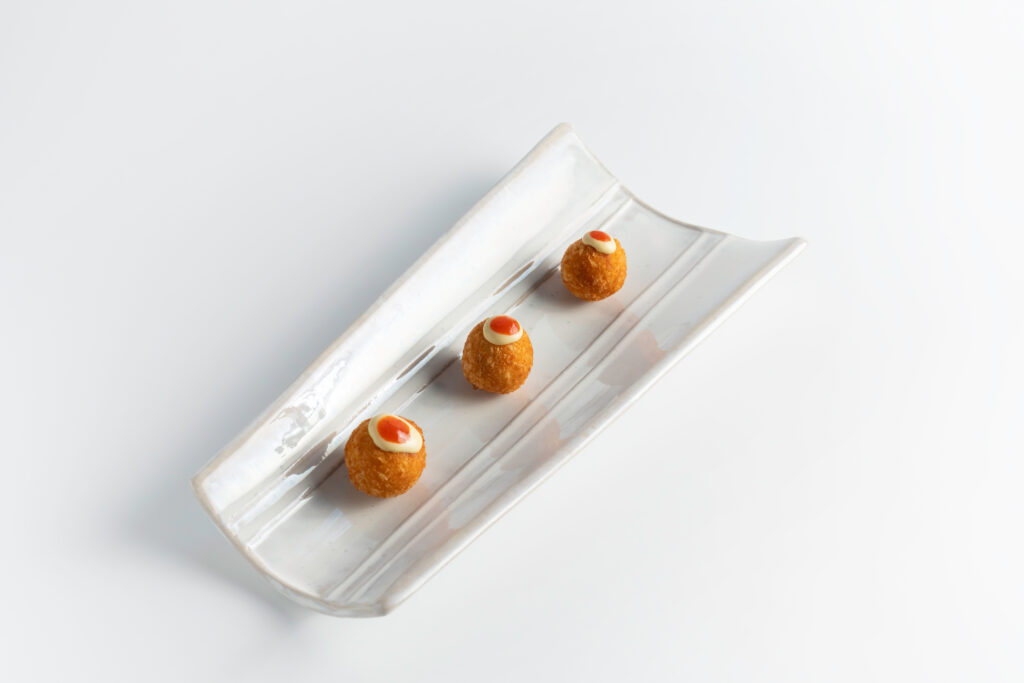 Španělská gourmet expedice à la Moments začíná – kde jinde – než v Barceloně, kde se podnik nachází. První etudou čtyřchodového úvodního dějství je Bomba de la Barceloneta. Na první pohled nijak zvlášť zajímavá zlatavá kroketa v sobě ukrývá překvapivou explozi chutí definovanou mixem kuřecího, hovězího a vepřového masa nebo v alternativní veganské variantě bramborami a typickým španělským alioli, přičemž celou kompozici v obou případech ladně objímá panko strouhanka.