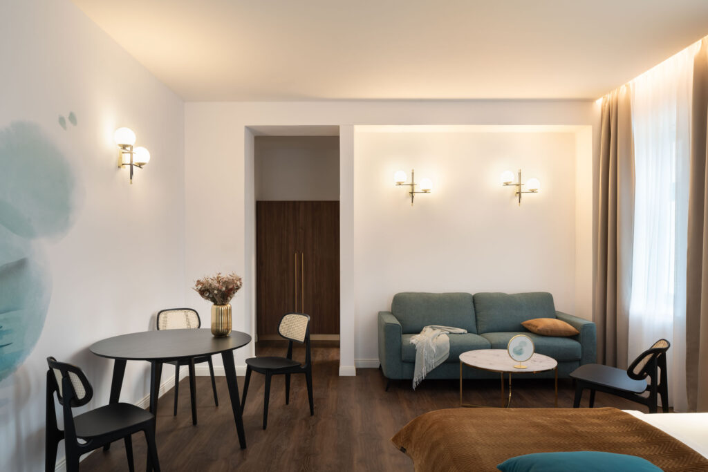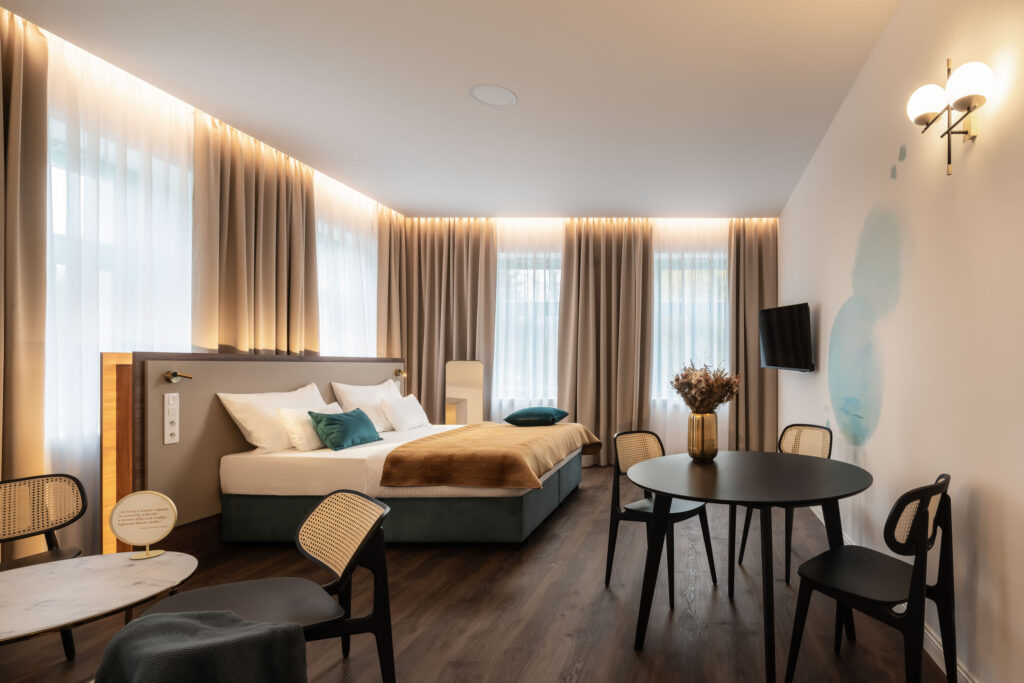 V hlavní budově resortu, která se nachází jen pár kroků od nově otevřených Boutique Apartments Železná, stojí za pozornost také moderní konferenční prostory a wellness zóna se saunou, párou, infrasaunou a masážními terapiemi.
