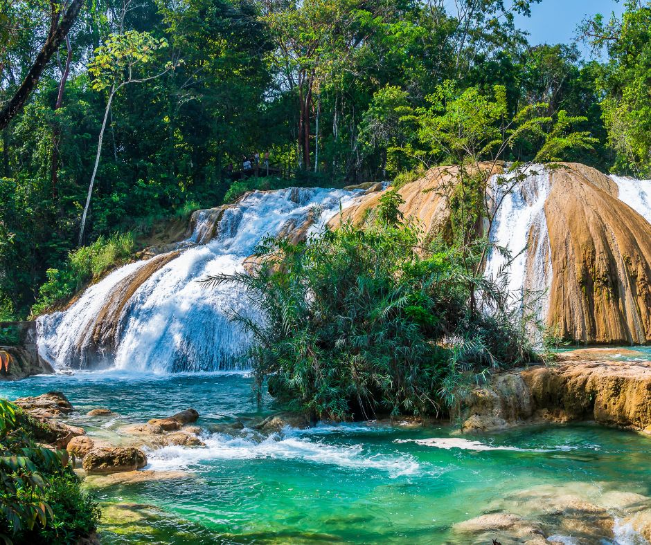 Proč si neudělat výlet za zrcadlovými jezery, jako je Bacalar, a nepokochat se i vodopády Agua Azul? Už samotný název vypovídá o unikátní azurové barvě, kterou můžete očekávat. Sytě modré tóny jsou částečně způsobeny vysokým obsahem minerálů v řece, ale také odrazem slunečního světla od bílého vápence na dně.