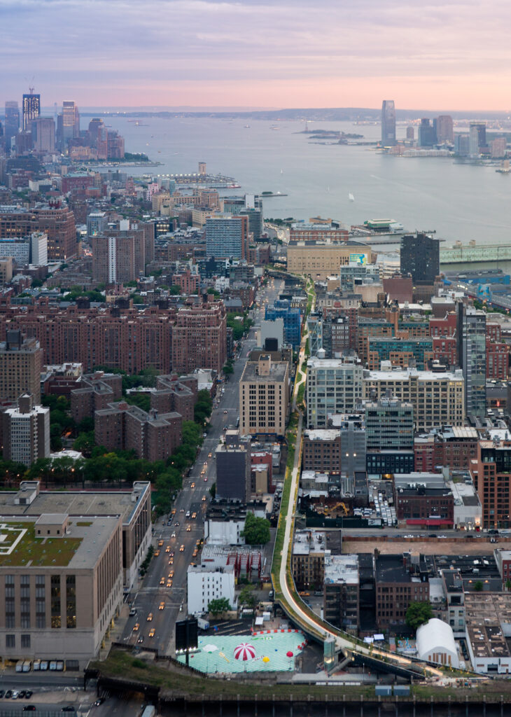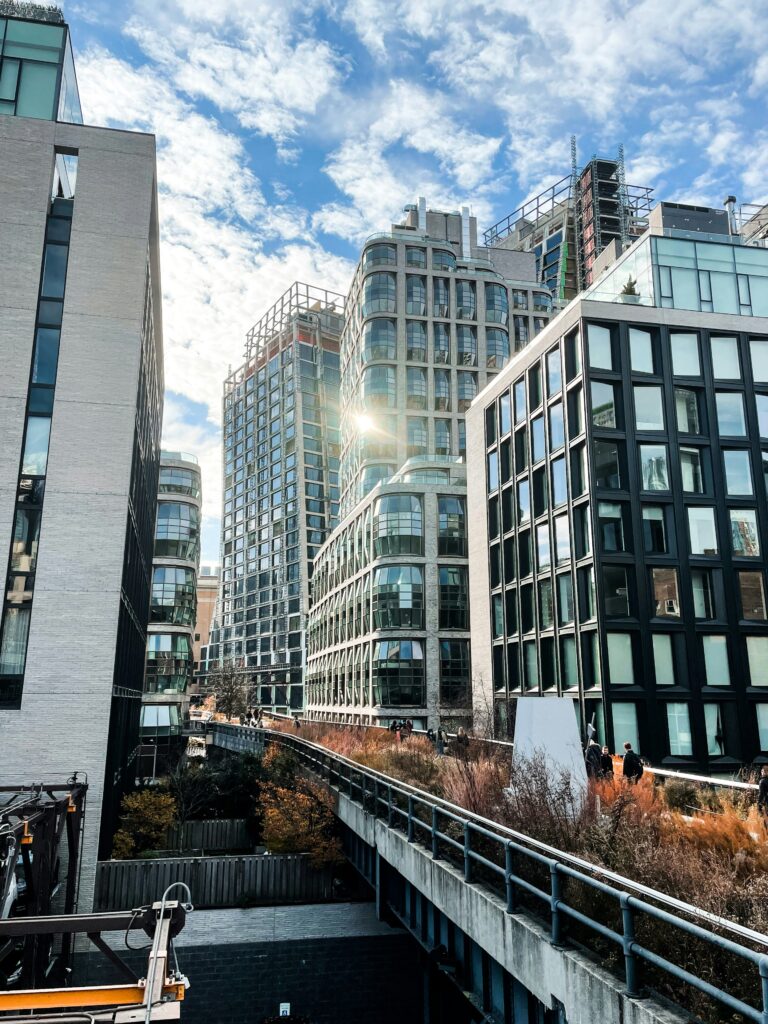 High Line se táhne v délce okolo tří kilometrů a nabízí návštěvníkům dechberoucí výhledy na Manhattan a řeku Hudson – proto sem neváhejte zajít na západ slunce. Design zahrnuje krásné množství zeleně a květinových záhonů, umělecké instalace a stylově řešené lavičky pro odpočinek.