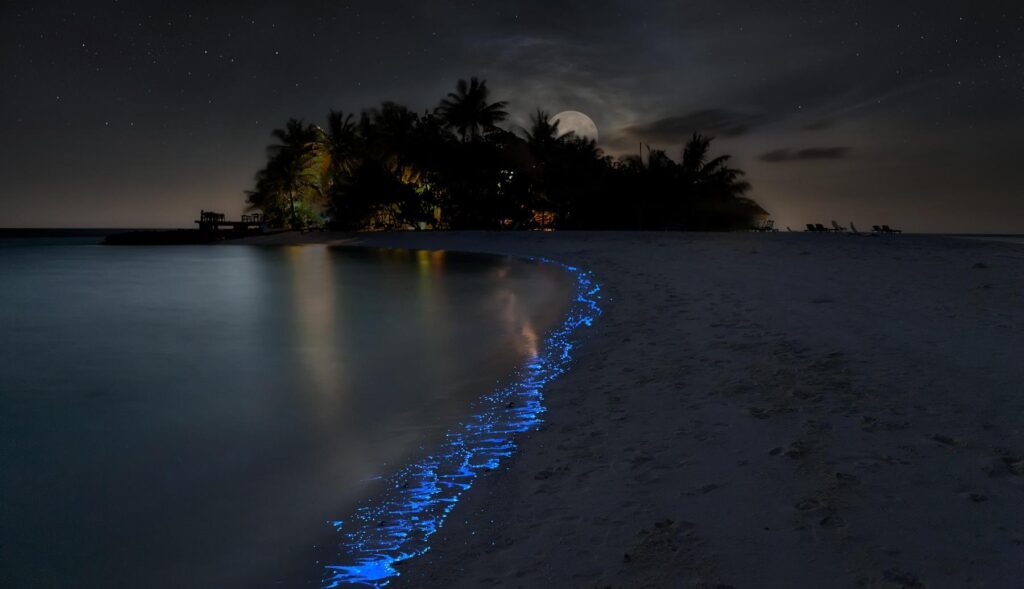 Aby ale byl tento efekt viditelný, musí být po celý den konstantní teplota a v noci velká tma. Ačkoliv tato přírodní světelná show může existovat i na jiných místech Tichého a Atlantského oceánu, existuje jen málo míst, kde to umožňuje podnebí. Z toho důvodu jsou Maledivy považovány za nejpůsobivější místo na světě, kde si tento přirozený světelný úkaz můžete užít.