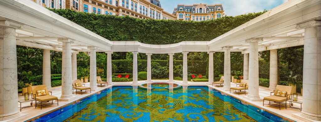 Italská módní značka Versace, která úspěšně dobývá i hoteliérský a interiérový trh, otevřela svůj první hotel v Asii, Palazzo Versace Macau v autonomním regionu na jižním pobřeží Číny. Opulentní interiérový design spojuje maximalistický odkaz italské značky s elementy čínské estetiky. Hotel se pyšní i svou vlastní michelinskou restaurací Don Alfonso 1890 s italskou kuchyní, zatímco La Scala del Palazzo zve na zhmotnění evropské coffee culture. Nejnovější palazzo italského giganta, s polohou jen deset minut od letiště, láká i na SPA se sedmi suites a nechybí ani sauna, pára nebo turkish hamman. Highlightem wellness části hotelu jsou pak okázalé bazény s mozaikou draka na dně a exteriérové mramorové sloupy.