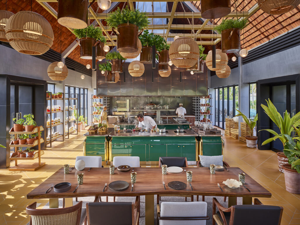 Delikátní zážitek si pak můžete užít v restauraci v hřejivých přírodních tónech oživených zavěšenými zelenými rostlinami a nebo se můžete gourmet menu oddat přímo uprostřed zahrad v komfortních stylových cabanách. Na večeři pak vyrazte do interiéru restaurace, kde už uvidíte vyskládané kousky zeleniny a ovoce, z níž vás následně překvapí dokonalé večerní menu. Mimochodem, ultimátní vegan zážitek si můžete i odvézt domů – přes den tu totiž probíhají lekce vaření.