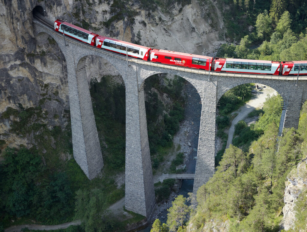 Kamenné viadukty zasazené do strmých skal alpských vrcholů, zelené kopce s pasoucími se stády dobytka i odlesky čistých vod jezer. To jsou první obrazy, které se vybaví každému, když si představí švýcarskou přírodu. A tou se proplétá jedna z nejzajímavějších a také nejfotogeničtějších železničních drah světa. Rhétská dráha, jejíž úseky Albula a Bernina jsou dokonce zapsány na seznamu světového dědictví UNESCO, patří k hlavním atrakcím země. Užít si ji je možné hned ze dvou úhlů a oba dva jsou neméně krásné. Jako první je cesta po Rhétské dráze jako taková. Kupte si jízdenku, usedněte do vlaku a kochejte se panoramatickými výhledy. Například v panoramatickém vlaku Bernina Express na trase Chur / Sv. Mořic – Valposchiavo – Tirano, který propojuje na točité trase a bez ozubení tři jazykové regiony a kultury. Druhý způsob umocnění zážitku je pak obdivovat už parní či supermoderní vlaky ze speciálně postavených vyhlídek. Nezamilovat se do vlaků je ve Švýcarsku téměř nemožné.