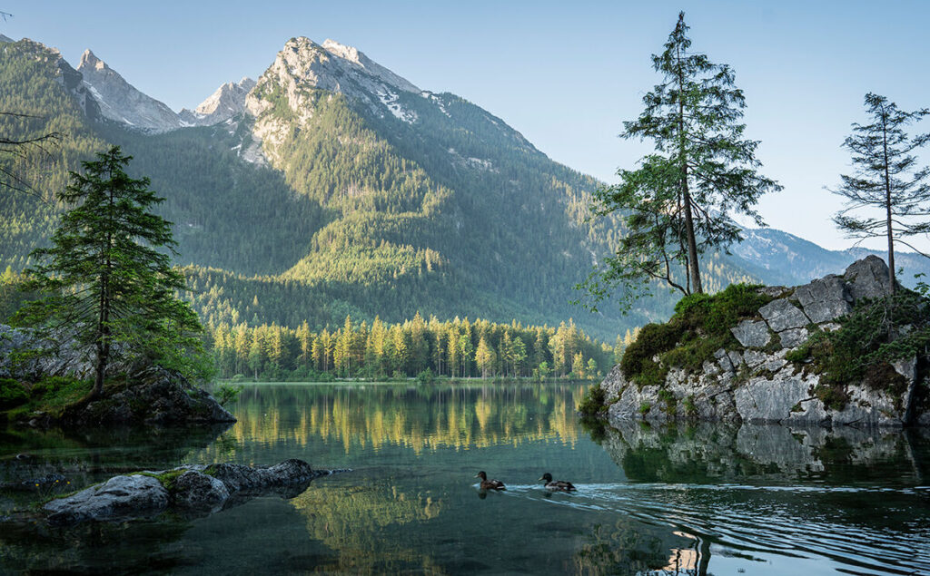 Chcete se v létě pořádně osvěžit? Udělejte to stylově a zamiřte do Bavorských Alp. Okouzlující jezero Hintersee má stálý přísun čerstvé vody z ledovců a při západu slunce se v něm zrcadlí ohromující alpská krása.