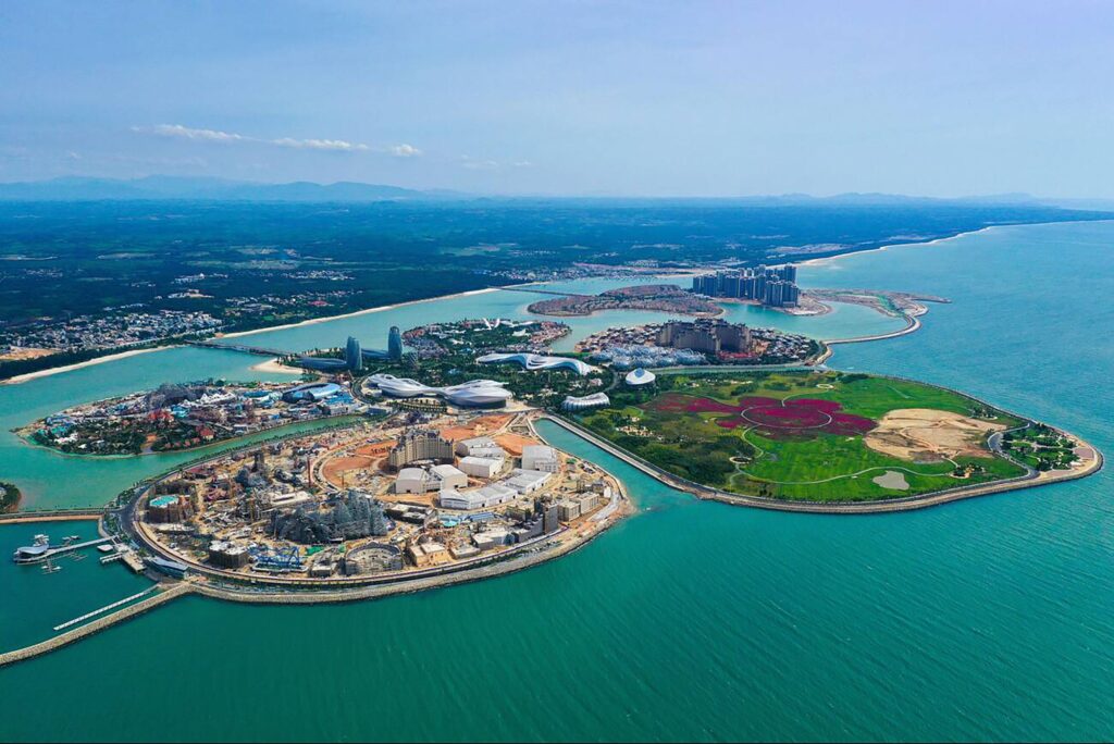 U severního pobřeží Danzhou v čínské provincii Hainan leží ostrov Ocean Flower, který je jednou z hlavních turistických destinací země. Podle některých zdrojů se právě Ocean Flower ve tvaru květiny považuje na největší umělý ostrov na světě. Je 1,5 krát větší než Palm Jumeirah a může ubytovat až 200 000 lidí. Stavba tří ostrovů, které jsou navzájem propojené, byla dokončena v roce 2020 a trvala 12 let. Najdete tu exkluzivní resorty, špičkové hotely, umělecké galerie, horké prameny, vodní parky, pohádkový svět i botanickou zahradu.