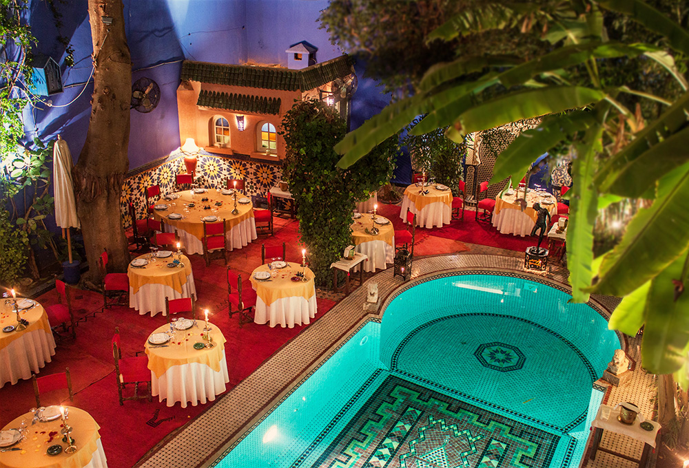 Také další francouzský fashion designér, Pierre Balmain, si Marrákeš oblíbil natolik, aby v ní zanechal svou stopu. V bohatě zdobeném riadu z 19. století zachoval tradiční výzdobu, bazén a živou zahradu, a díky tomu si v Insta-Friendly prostředí můžete vychutnat top gourmet kuchyni světově proslulé marocké restaurace Dar Moha.