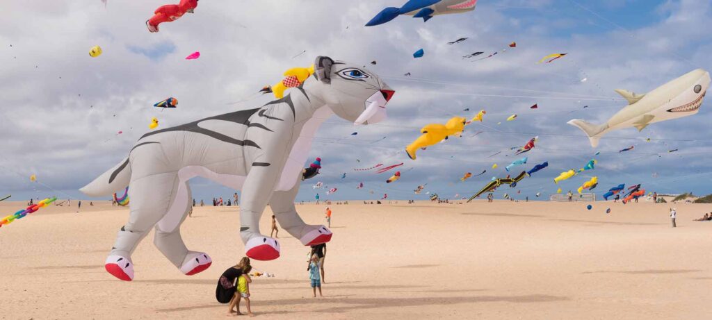 Obrovští draci všemožného vzezření budou křižovat nebe také nad bílými plážemi Fuerteventury, a to od 11. do 17. listopadu v přírodní rezervaci Corralejo. Jedná se o skvělou příležitost tento ostrov navštívit a užít si zábavu s výhledem na ostrov Lobos v pozadí. V programu nechybí živá hudba, workshopy a aktivity pro všechny věkové skupiny. Až budete mít dost pestrobarevných obličejů a různorodých motivů nad hlavou, vydejte se hledat klid mezi obrovské písečné duny na ploše několika kilometrů čtverečních, které nepřestávají fascinovat návštěvníky z celého světa.