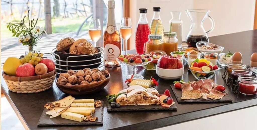Na farmě má čtyři apartmány s rozmáchlým designem a nádhernými výhledy do vinic nad Bolzanem. Blízko jezero na koupání, vedle les s bike traily a vůkol dvoutisícové kopce na túry i výběhy. Před domem bazén, uvnitř wellness se saunou i vířivkou. „Aktivitám se meze nekladou, v neděli vás klidně vezmeme i do práce na brigádu,“ zve na pobyt kdykoliv v roce.