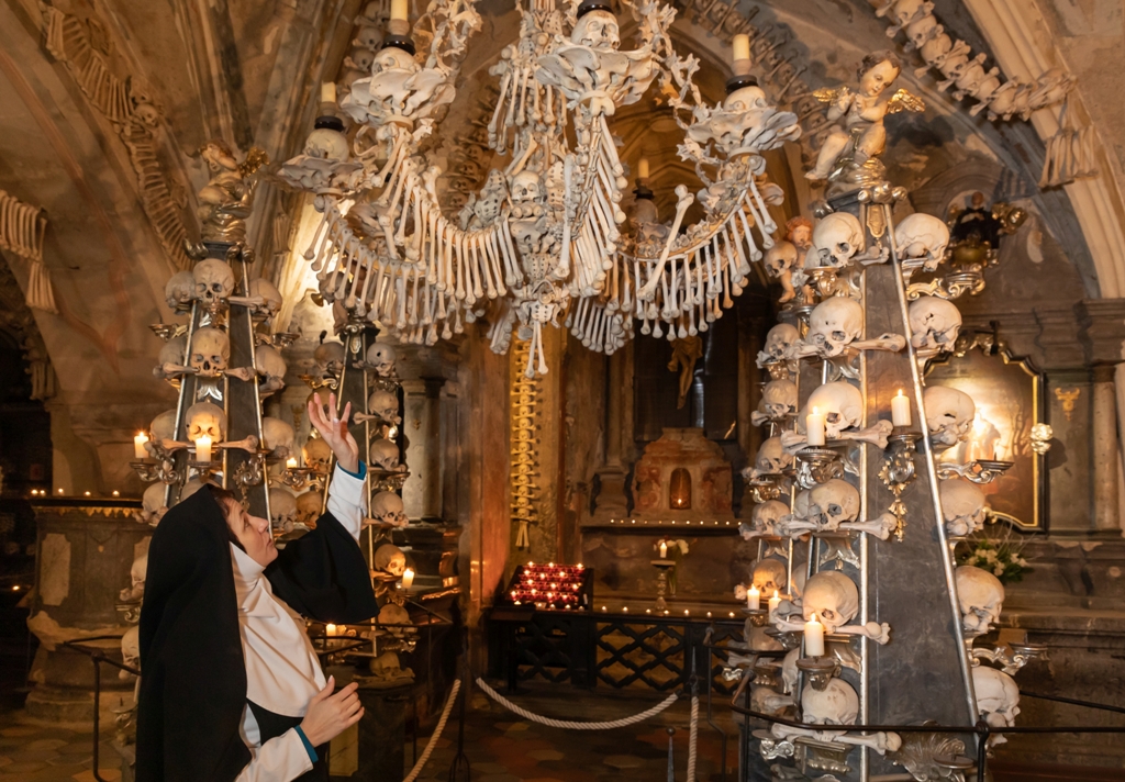 Kostnice v Sedleci se nachází nedaleko historického města Kutná Hora a patří mezi nejoblíbenější české turistické cíle. Její výzdobu tvoří více než 40 000 skutečných lidských kostí. Čtyři kostěné pyramidy a propracovaný lustr ze všech lidských kostí tu vytváří mrazivou atmosféru. Můžete tu obdivovat i hrdě vystavený erb rodu Schwarzenbergů. Dodnes není zcela jasné, kde se kosti vzaly. Hovoří se o morové ráně, která s sebou nesla tolik mrtvých, že je nebylo možné pochovat. Kosti byly exhumovány a uloženy v malém místním kostelíku. Teprve až koncem 19. století, kdy byly pečlivě protříděny, mohla vzniknout tato neuvěřitelná umělecká díla a kostelík „ožil“ jako vyhlášená kostnice.