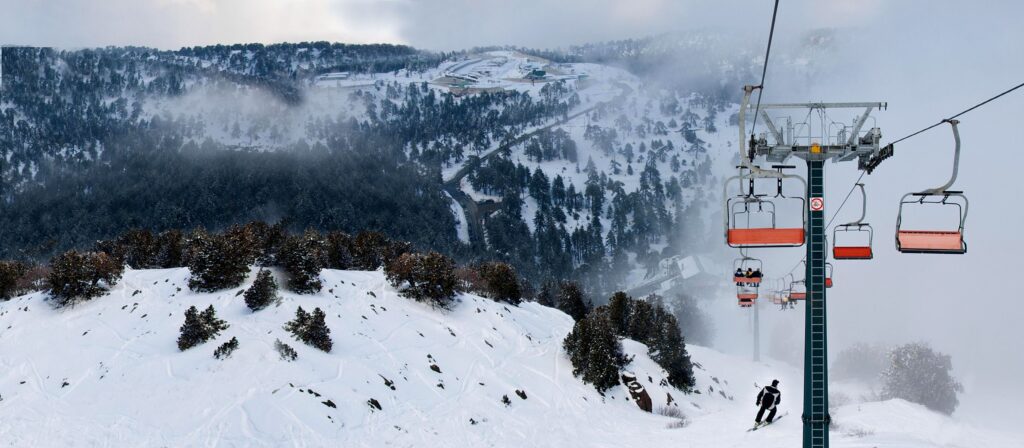 Hora Olymp leží jen dva kilometry od horského střediska Troodos a hodinu jízdy autem od přímořského města Limassol i hlavního města Nikósie. Zážitkové lyžování si můžete užít přímo na svazích hory Olymp díky čtyřem lanovkám ve výšce 1951 metrů, a to obvykle od začátku ledna do konce března.