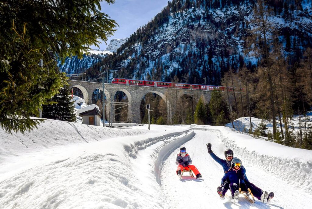 Švýcarské město Bergün je domovem těch nejmalebnějších sáňkařských drah v Evropě. Horský průsmyk Albula bývá v zimě uzavřen pro automobilovou dopravu a silnici zaplňují jen dřevěné tobogány. Jezdci mohou nasednout na alpský vlak Rhätische Bahn a užívat si nádhernou jízdu krajinou zapsanou na seznamu UNESCO. Po 25 minutách se dostanete k vrcholu průsmyku k šest a půl kilometru dlouhé sáňkařské dráze, po níž se dá jet na sáňkách zpět dolů do vesnice.