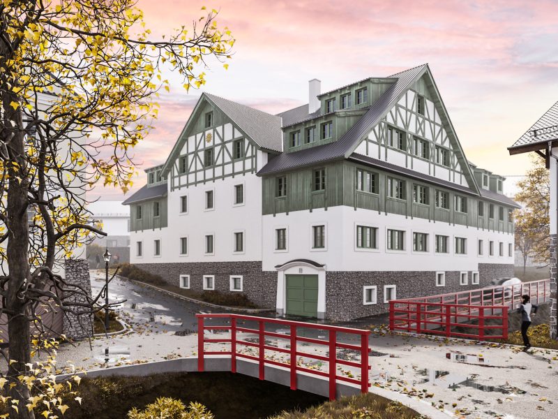 Josef Hrouda přírodu ctí, což se samozřejmě promítá i do jeho developerských projektů. Ke spolupráci navíc přizval architekta Karla Jirase, který citlivě vnímá, kde nový projekt vzniká – v místě obklopeném CHKO, památkovou zónou a v místě, které je zapsáno na seznamu světového dědictví UNESCO. „Aktuální stav Slunečné ani Slovanky zdaleka neodpovídá historické podobě původních stavení. V rámci přestavby usilujeme o maximální možnou obnovu původní historické podoby obou objektů, která by pomohla navrátit rovnováhu do centra Božího Daru, a oživit tak někdejší atmosféru živého hornického městečka,“ vysvětluje své vidění projektu architekt Jiras. A doplňuje: „V Krušných horách bych rád viděl budovy z konce 19. století, kdy byly jednak ještě tvarově a pohledově jednotné a jednak lidé, kteří zde žili, měli tenkrát asi větší cit pro stavbu v přírodě. Objekty jako celky, i když rozeseté po krušnohorské pláni, tak nepůsobily, že by přírodě překážely, naopak s ní splynuly.“