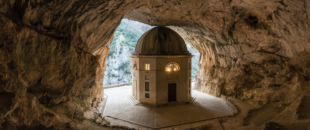 Krajina regionu Marche je rozmanitá – od horských masivů až po mořské pobřeží. Národní park Monti Sibillini v jihozápadní části Marche láká na úchvatné túry mezi divokými vrcholky a ledovcovými jezery v liduprázdné krajině. V létě ji navíc rozzáří záplavy květů včetně lánů vlčích máků. Ale my se vydáváme objevit další poklad, tentokrát ukrytý skutečně hluboko pod zemí. Jeskyně Frasassi jsou součástí přírodního parku Gola della Rossa di Frasassi, stejně jako osmiboký kamenný chrám Valadier vsazený do ústí jeskyně poblíž komplexu Frassasi. Ten je pak jedním z největších krasových systémů v Evropě. Jde o fascinující podzemní svět, kde se dá v čase cestovat i vertikálně. Když se ocitnete v obrovském dómu Grotta Grande del Vento, kam by se pohodlně vešel celý chrám sv. Petra, cítíte se jako mravenec v katedrále přírody. Stalagmitové útvary nesou jména jako Gigantická Niagara nebo Varhany a voda tu tisíce let modeluje fantaskní tvary, které vypadají spíš jako dílo surrealistického sochaře než náhody.