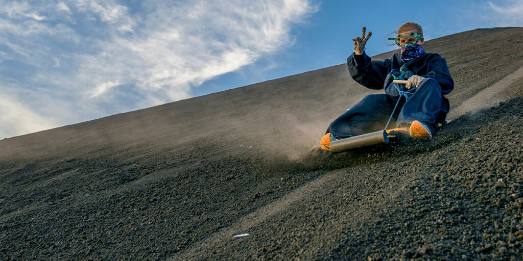 Jediné místo na světě, kde můžete jezdit na prkně po svahu aktivní sopky. Cerro Negro je mladá, černým pískem pokrytá sopka, kterou si vyšlápnete s prknem na zádech a sjedete dolů rychlostí až 80 km/h. Tenhle „sopečný snowboarding“ je špinavý, prašný a naprosto návykový zážitek.