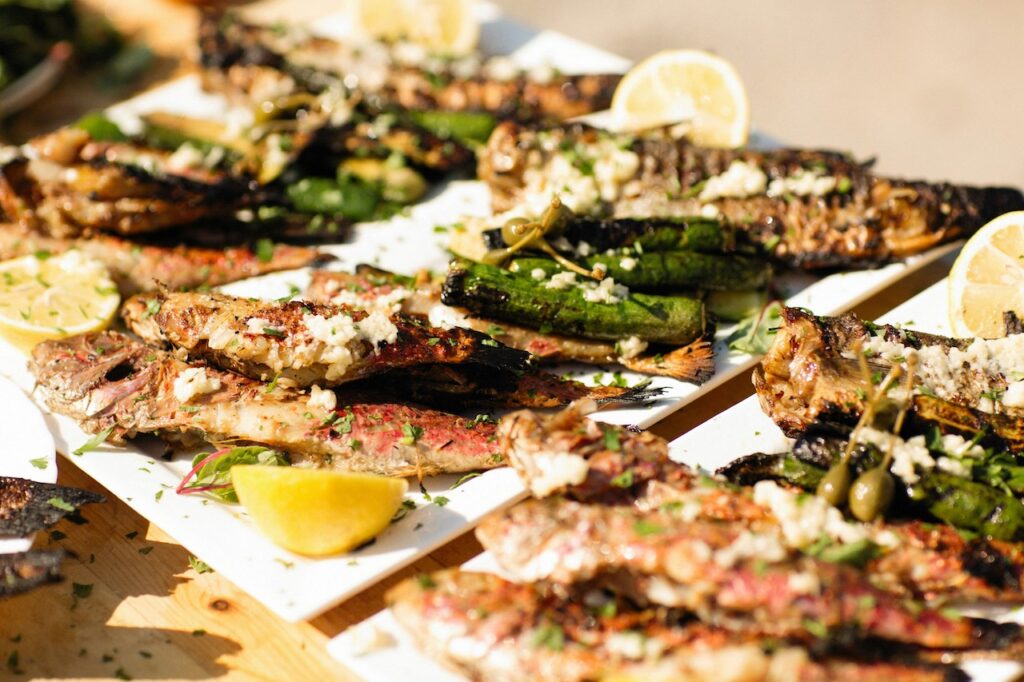 Řecká kuchyně je plná středomořských vůní, bylinek a olivového oleje. V horkých dnech přijde vhod horiatiki salata, tedy tradiční řecký salát s rajčaty, okurkou, olivami, červenou cibulí a velkým kusem sýru feta. Dalším typickým letním jídlem je oblíbené tzatziki, jogurtový dip s česnekem a okurkou, který se podává s chlebem pita nebo jako doplněk ke grilovaným masům. Zapečené pokrmy jako moussaka jsou sice sytější, ale večer na terase u sklenky ouza nebo vína chutnají nezapomenutelně. Za vyzkoušení stojí i dolmadakia, vinné listy plněné rýží a bylinkami. Milovíci masa zcela jistě nevynechají souvlaki, špízy z grilovaného masa. Pokud holdujete spíše zelenině, nevynechejte kani typický krétský salát dakos s delikátními suchary z ječmenu, které změknou v olivovém oleji a vytvoří dokonalou symfonii s rajčaty, oreganem, olivami a krétským kozím sýrem mizithra. Samozřejmostí je i spousta ryb a čerstvých mořských plodů, jako je grilovaná chobotnice, lavraki (grilovaný mořský vlk), krevety saganaki v rajčatové omáčce, smažené kalamáry nebo slávky na bílém víně s česnekem a bylinkami.