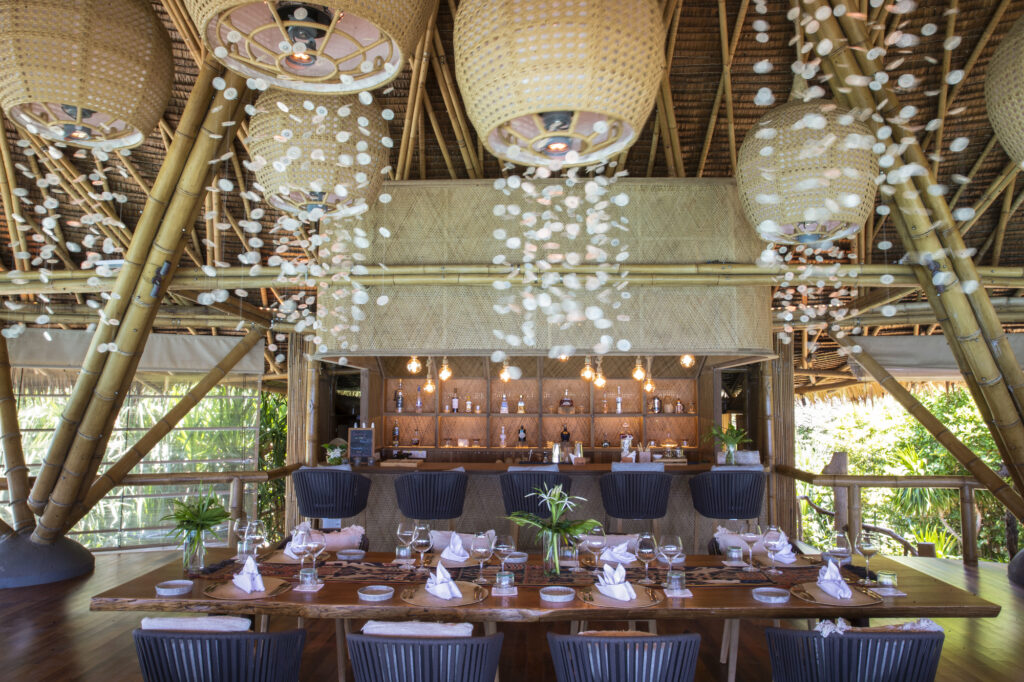 Kulinářský tým Elang staví své unikátní menu na síle čtyř živlů. Ochutnat můžete maso uzené nad ostrovním dřevem, zeleninu z místních zahrad, pokrmy na hliněné planche a koktejly s botanical infuzemi. Večeře se konají pod klenutými trámy u dlouhého dubového stolu v The Club House, koktejly se podávají při západu slunce v panoramatické Owner’s Lounge ve vyšším patře a autentická kuchyně nejlépe chutná v The Beach House, který se ukrývá na soukromé pláži.