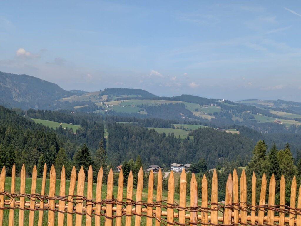 Taky cestou na Grossplonerhof dáte motoru svého vozu zabrat. Ale pohledy na okolní krajinu, včetně majestátního kaňonu, vám to bohatě vynahradí. Pojedete vzhůru z Brixenu z Eisacktalu/Valle Isarco do Lüsonu. Též zdejší majestátní farma, kterou vystavěl Martin Kaser v roce 2004, se tyčí zaklesnutá pevně ve strmém svahu 1000 metrů vysoko s výhledy do hor i k městu. Chovají tu padesát krav, které nadojí 1500 litrů mléka denně, pro něž si vždy dopoledne přijede velká cisterna. K tomu pěstují brambory, zeleninu, bylinky, mají ovocné stromy, dělají med, na podzim dostanete i kaštany. „Jen víno si bereme od sousedů,“ popisuje dcera Marie. Na provozu se podílí i téměř devadesátiletá babička, která denně vaří pro celou početnou rodinu.