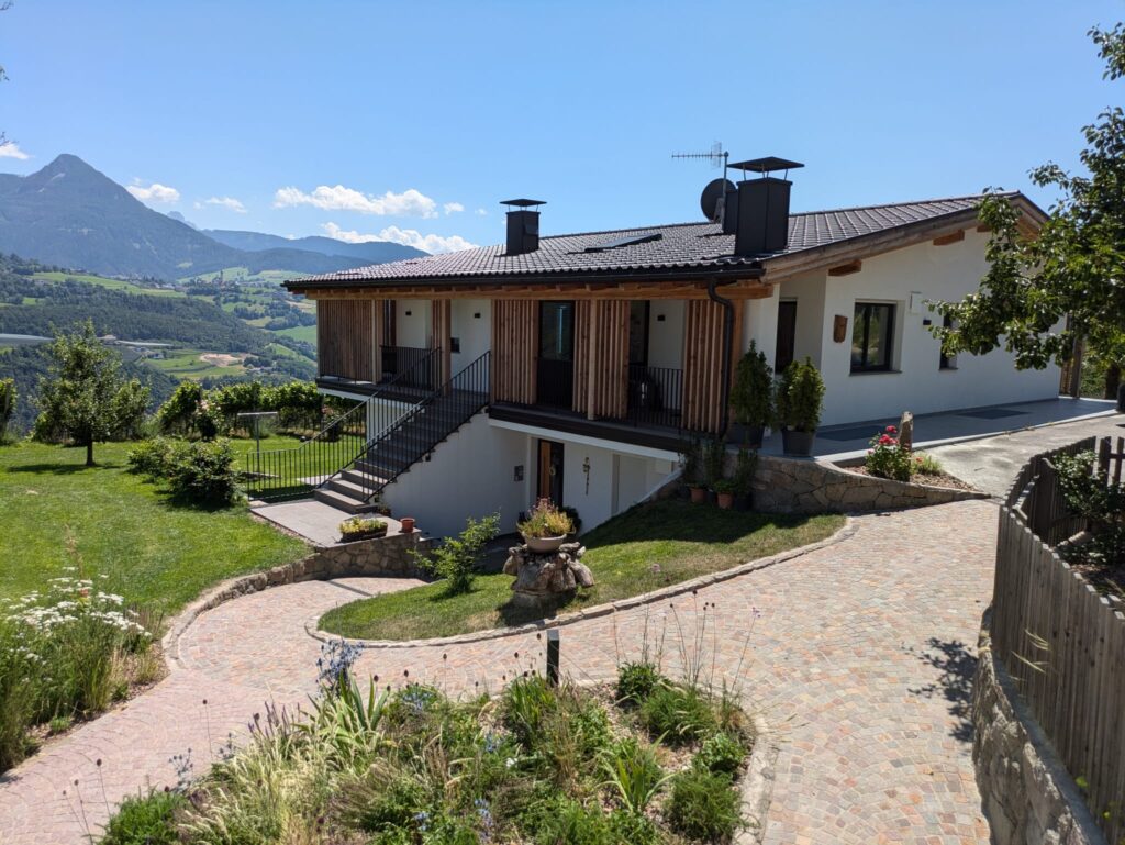 V historické budově bydlí rodiče a v horním patře zde otevřeli tři apartmány. Nesou názvy Hilde’s kuchl, Sepp’s Bochstube a Peter’s Stube s odkazem na rodinnou tradici. Ostatně fotografie mnoha generací, které zde žily a pracovaly, zdobí půvabný interiér, v němž se snoubí historie i moderna. Sami mladí obývají nové stavení, kde mají i společenskou místnost, informační centrum a jídelnu pro hosty. Čerstvě tu dokončili saunu, na okraji svahu najdete ohniště, a půjčí vám kola. Nechybí ani vlastní elektrostanice pro dobíjení. Do jihotyrolské metropole Bolzana s městskými lákadly je to jen kousek.