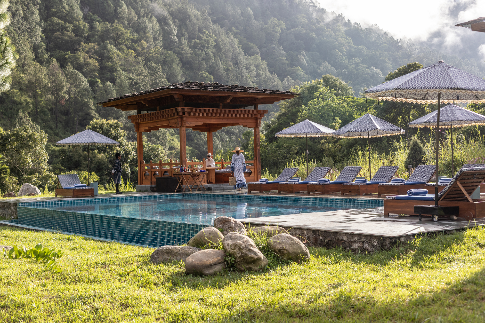 Spa nabízí mimo jiné procedury, které kombinují bhútánské léčení s globálními technikami, včetně masáží, ošetření obličeje a rituálů. Hosté si nejvíce oblíbili tradiční koupel s horkými kameny Dotsho. Kameny zahřáté ohněm se vhazují do vody s bylinkami, čímž se uvolňují minerály podporující fyzickou obnovu.