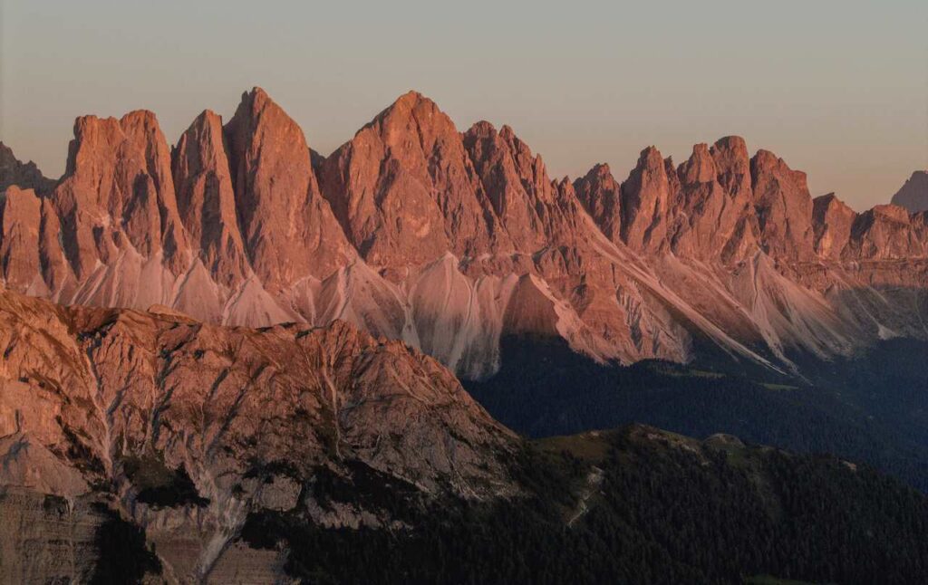 Ranní zážeh slunečních paprsků přináší neskutečný zážitek v každém ročním období. Ten podzimní za svěžího rána s unikátně nasvícenými Dolomity jako kulisou je skutečně nezapomenutelný. Není divu, že mnoho fotografů a turistů míří ještě za tmy do sedel nebo k vrcholkům, odkud je nejlepší pohled. Úžasný je třeba panoramatický výhled na Eisacktal z poutního místa Latzfonser Kreuz. Anebo z náhorní plošiny Monte Cavallo na Tschöggelbergu či ze Strudlkopfu, kousek od vyhlášeného Lago di Braies, kde bývá v létě limitovaná návštěvnost.