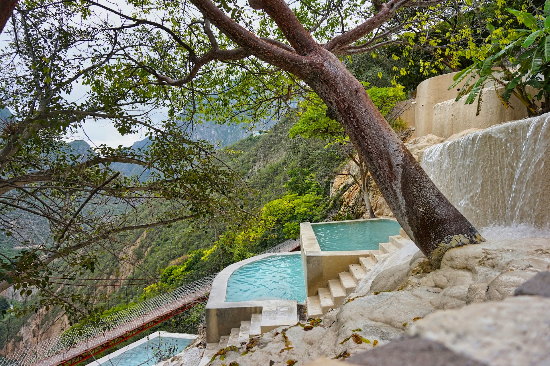Pokud plánujete širší cestu po středním Mexiku, můžete se vydat také k horkým pramenům Grutas Tolantongo, které leží přibližně 4–5 hodin jízdy od San Miguel de Allende. Lokalita zaujme množstvím tyrkysově zbarvených minerálních bazénků, jež se terasovitě rozprostírají na stěně kaňonu a otevírají působivé výhledy na okolní horskou krajinu.