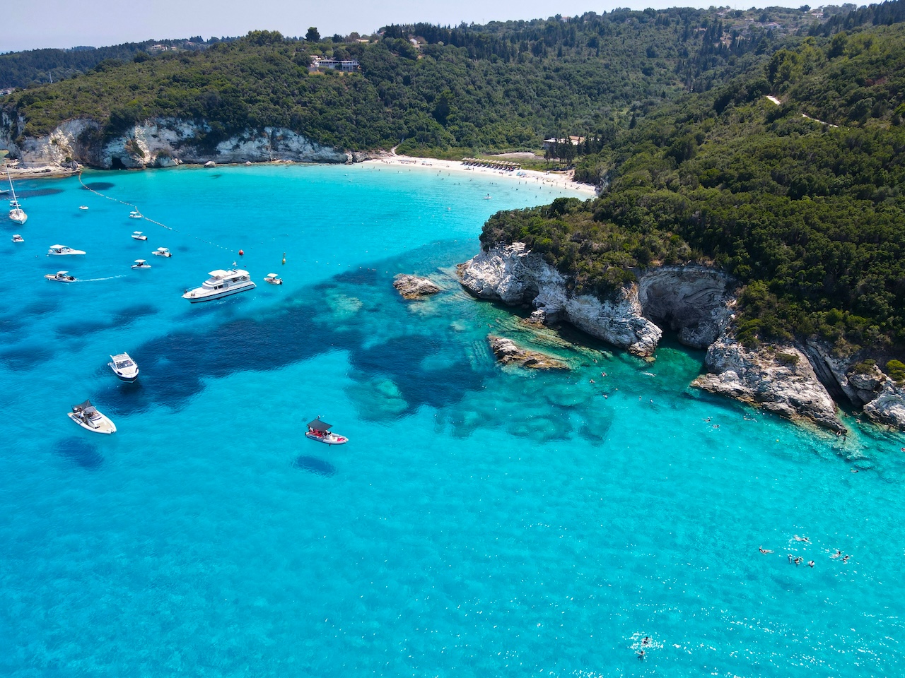 Nádherné scenérie vám zaručí také ostrovy Paxos a Antipaxos, kde vás přivítá akvamarínové moře a oblázkové pláže. Na rozdíl od turisticky vytíženějších míst, jako jsou Santorini nebo Mykonos, tady zažijete klidnější a autentičtější atmosféru. Oba ostrovy jsou považovány za skryté klenoty Řecka s bujnou zelení, nádhernými zátokami i atraktivními plážovými bary. Vydejte se tady i na malebnou písečnou pláž Mongonissi na jihu ostrova nebo na Kaki Langada nedaleko hlavního města Gaiosu.