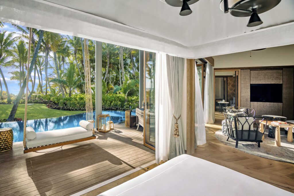 Waldorf Astoria Seychelles Platte Island nabídne zázemí v padesáti velkorysých, ale zároveň intimně laděných vilách s atmosférou ztraceného ráje, umocněnou servisem osobního concierge pro každou z vil. Architekti ze singapurského studia eco.id, které stojí za podobou nového resortu, ve své maximálně udržitelné a ekologické koncepci pro Platte Island vycházeli z elementů okolní přírody a pracovali s materiály s eticky dosledovatelným původem. Barevná paleta designového pojetí ostrova je neutrální, na první pohled harmonizující, a vzdušné interiéry ve svých tónech i formách nerušeně přecházejí v exteriéry. Těm dominují kromě výhledů na bělostnou písečnou pláž a čtrnáct kilometrů dlouhou korálovou lagunu také privátní bazény – každá z vil má k dispozici vlastní.