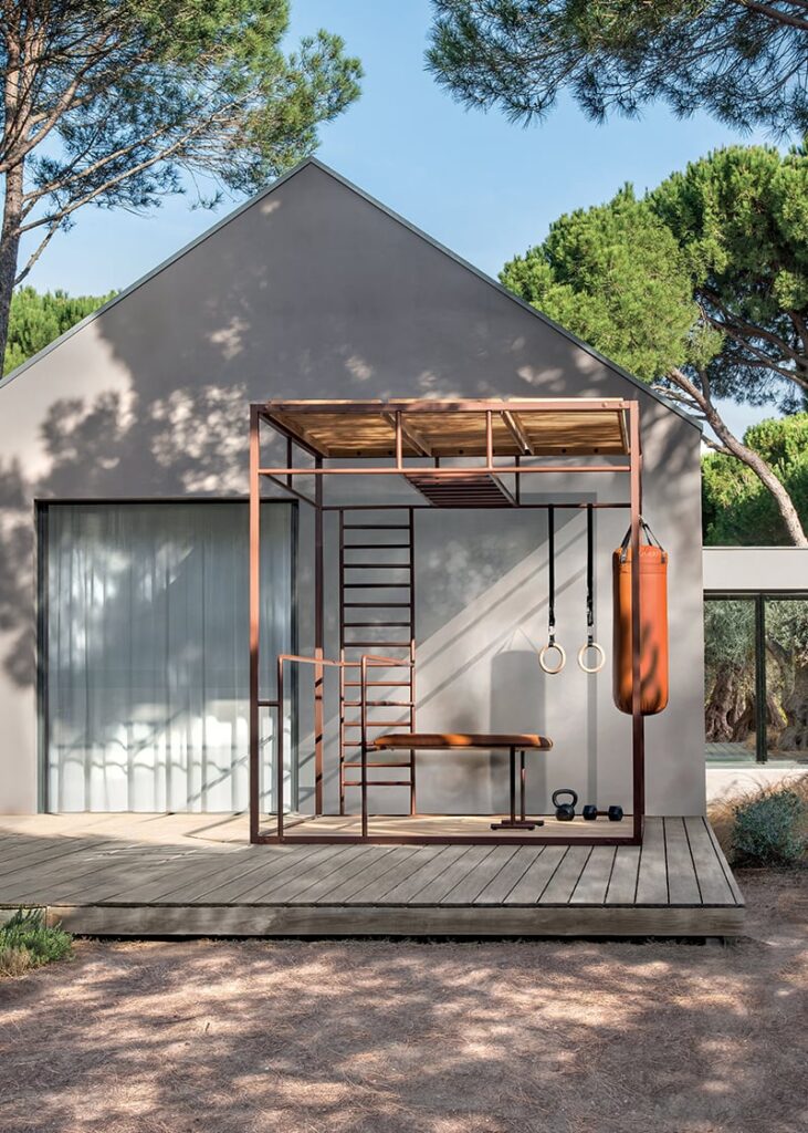 a pravidelný pohyb hrají důležitou roli v boji proti stresu. Pro ty, kdo rádi cvičí doma, představila společnost Ethimo jednoduchou, ale praktickou venkovní posilovnu. Na ploše 240 x 240 centimetrů jsou umístěny kvalitně zpracované kruhy, boxovací pytel, žebřík