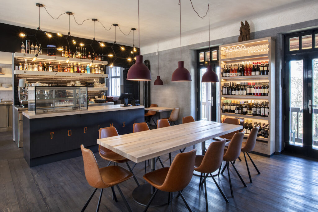 Interiéry apartmánů i chodeb se prolíná jednoduchý motiv vlaštovek. Padla na ně volba jednak proto, že jsou považovány za strážce domácího štěstí a posly dobrých časů, ale také proto, že se v domě během rekonstrukce dvě jara po sobě uhnízdily, aby zde přivedly na svět své potomky. Důležitou součástí domu je bistro Topinka v přízemí, v němž můžete po ránu zahájit svůj den vynikající organickou snídaní a později si dát třeba sklenku vína z nabídky zaměřené především na produkci autentistů. Název podniku není náhodný, jeho menu se skutečně zaměřuje na poctivý krajíc opečeného chleba, nicméně v mnoha gourmet variacích – naším favoritem je skandinávská topinka s marinovaným lososem, mladým koprem, tvarohem a medovou hořčicí.